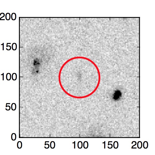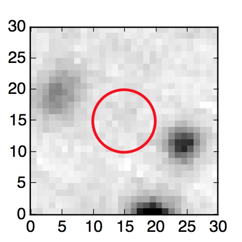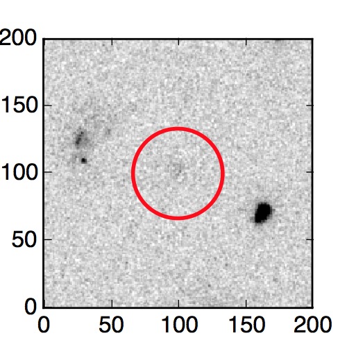 The red circle in the various panels is 1" in radius. The images are 6"x6".
