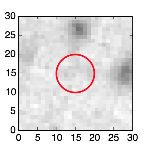 The red circle in the various panels is 1" in radius. The images are 6"x6".