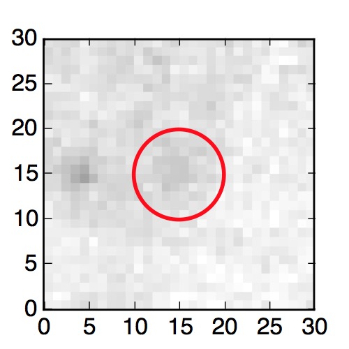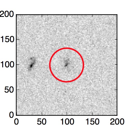 The red circle in the various panels is 1" in radius. The images are 6"x6".