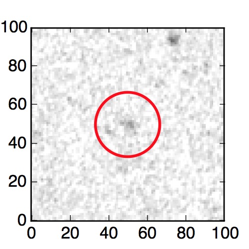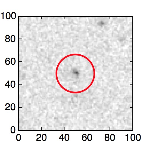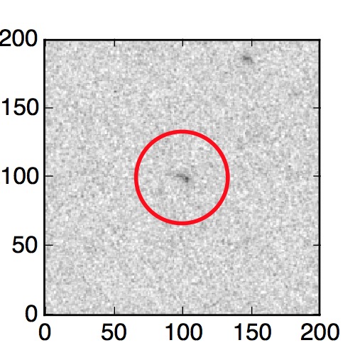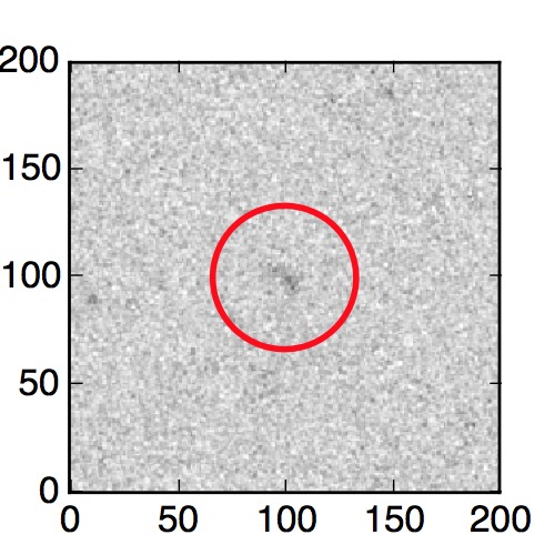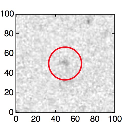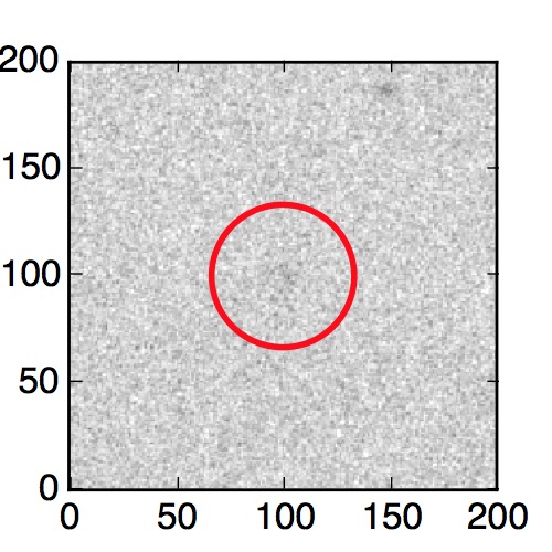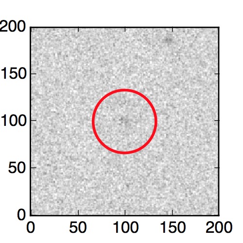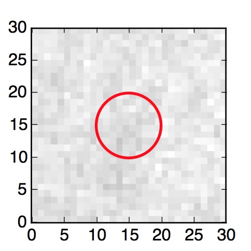 The red circle in the various panels is 1" in radius. The images are 6"x6".