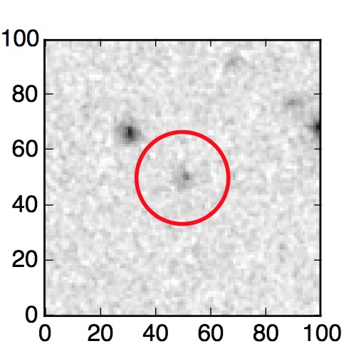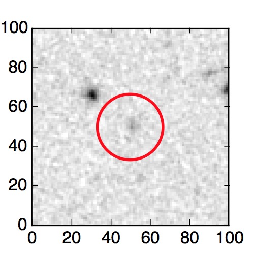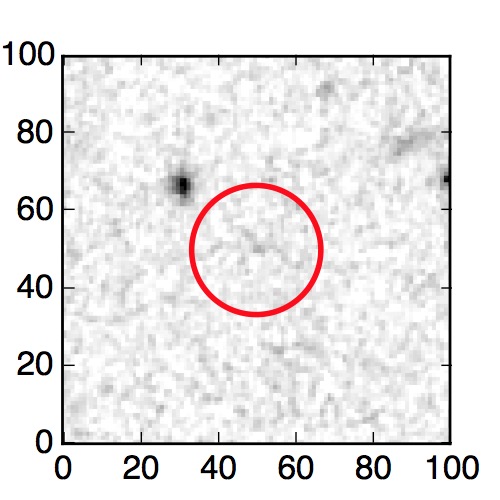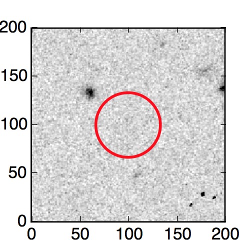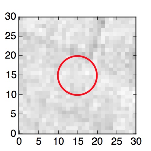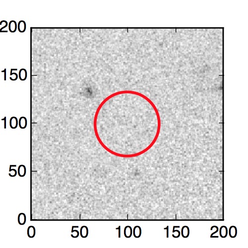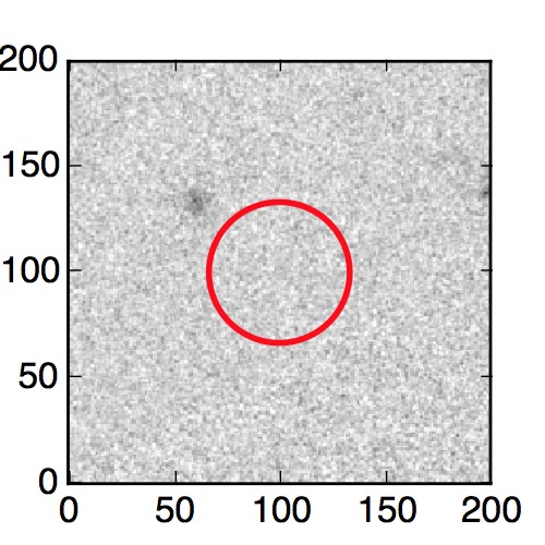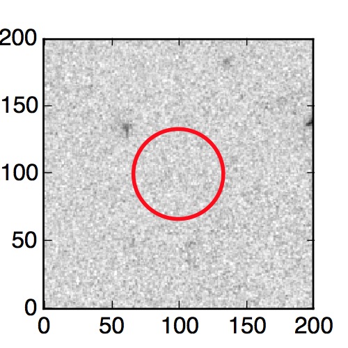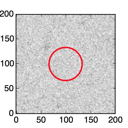 The red circle in the various panels is 1" in radius. The images are 6"x6".