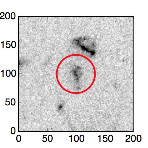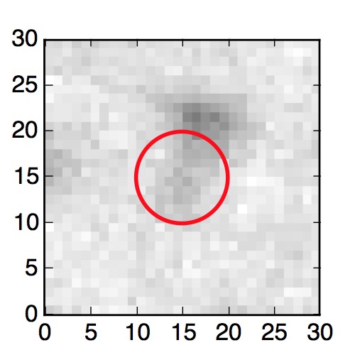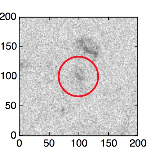 The red circle in the various panels is 1" in radius. The images are 6"x6".
