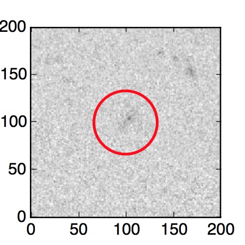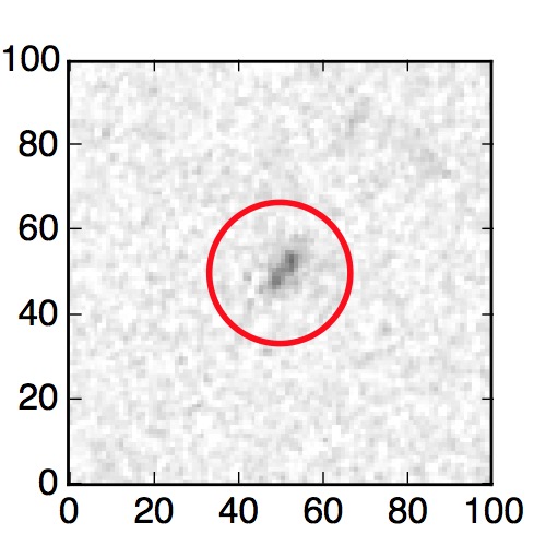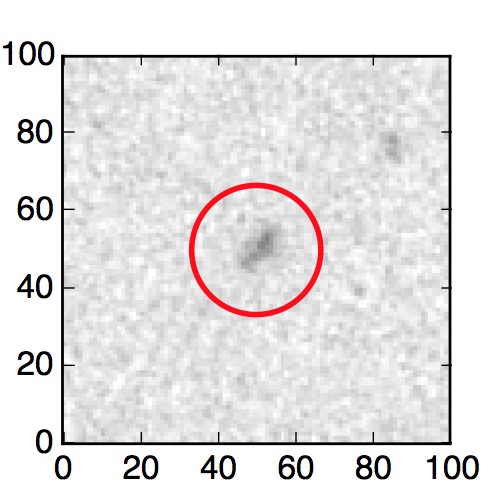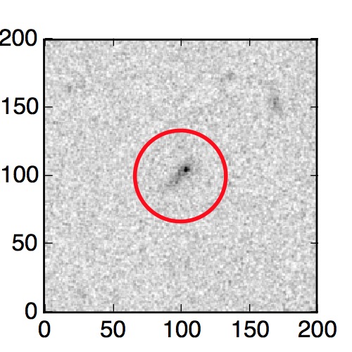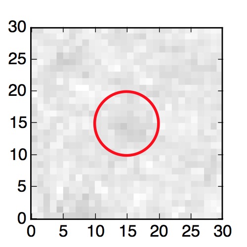The red circle in the various panels is 1" in radius. The images are 6"x6".