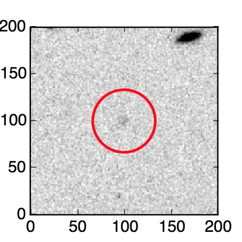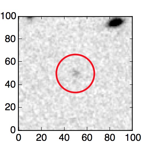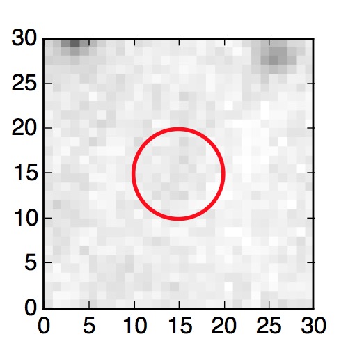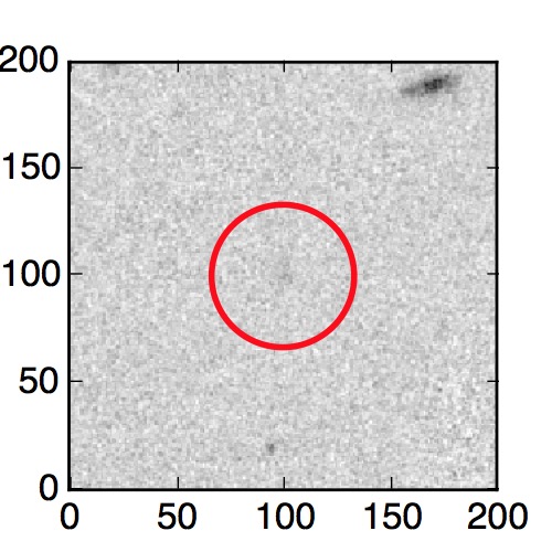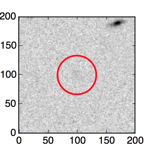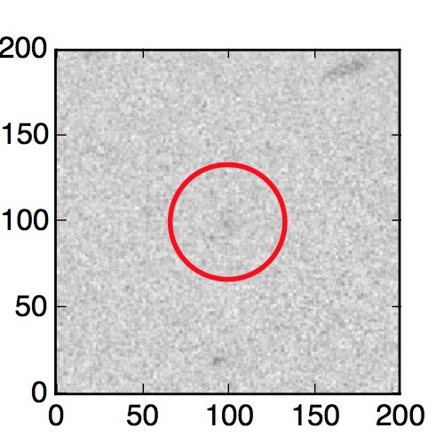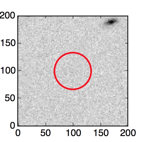 The red circle in the various panels is 1" in radius. The images are 6"x6".
