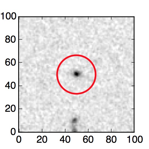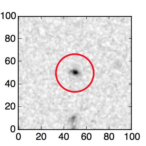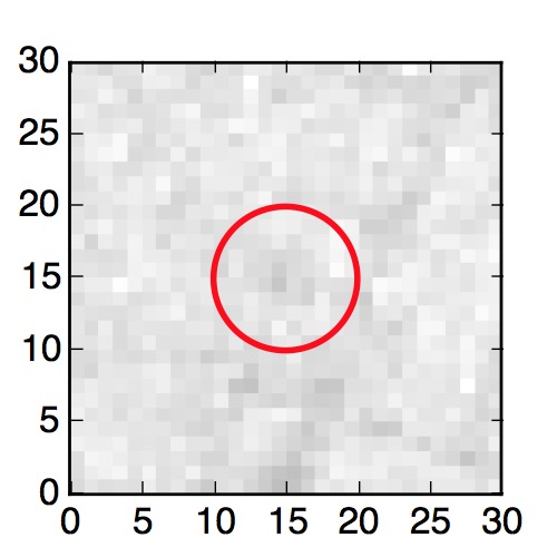 The red circle in the various panels is 1" in radius. The images are 6"x6".