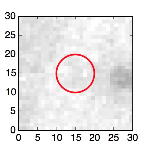 The red circle in the various panels is 1" in radius. The images are 6"x6".