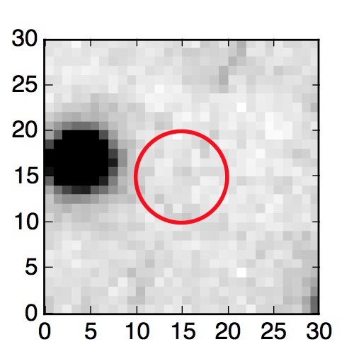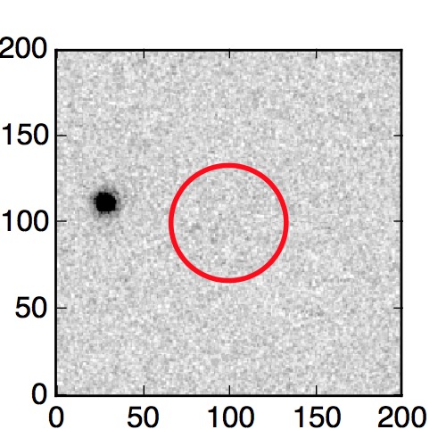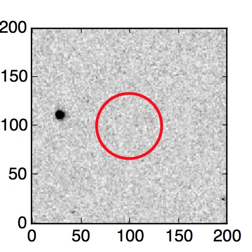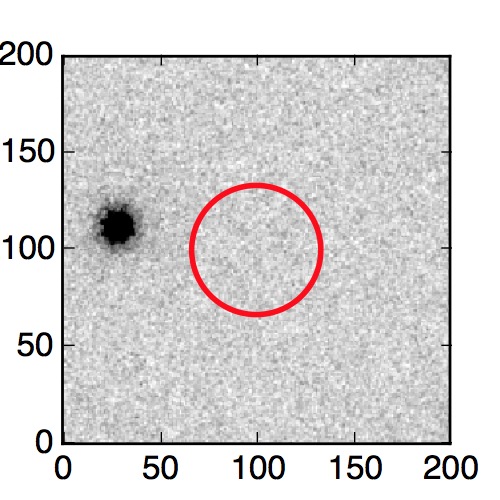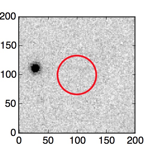 The red circle in the various panels is 1" in radius. The images are 6"x6".