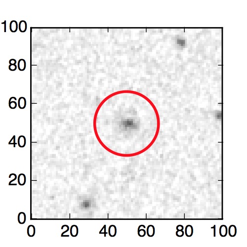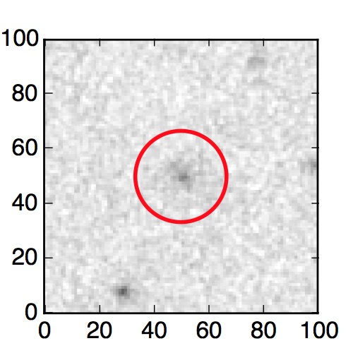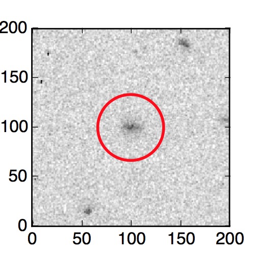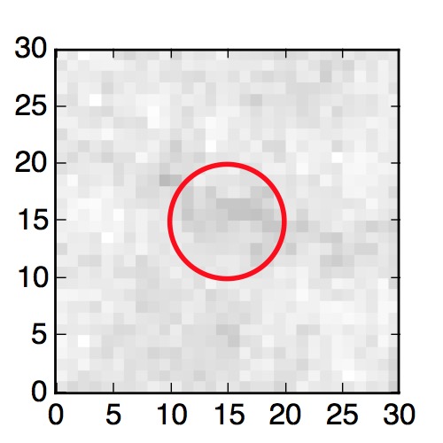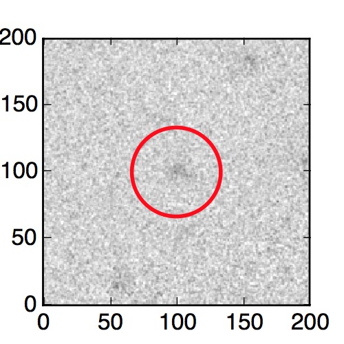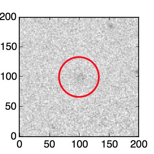 The red circle in the various panels is 1" in radius. The images are 6"x6".