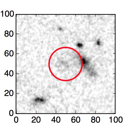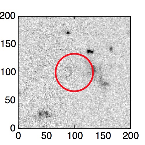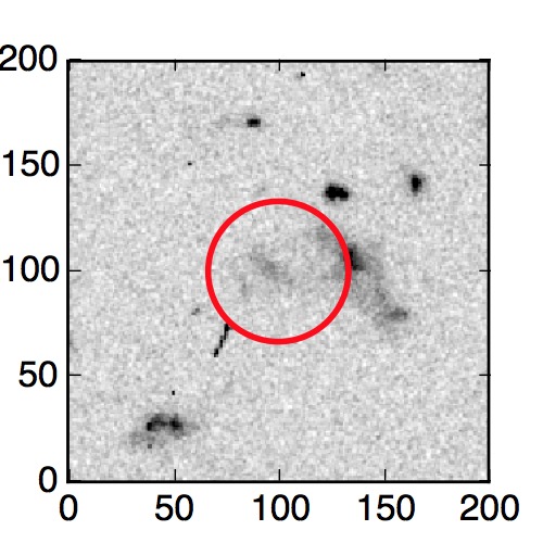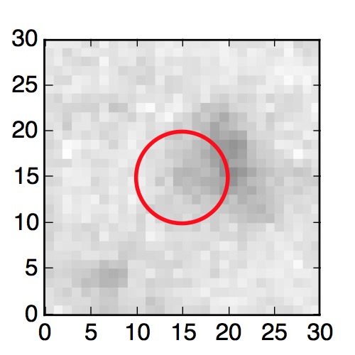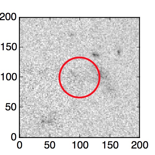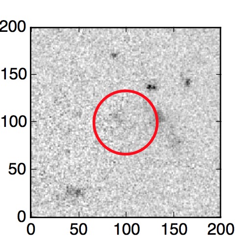 The red circle in the various panels is 1" in radius. The images are 6"x6".