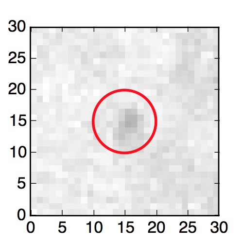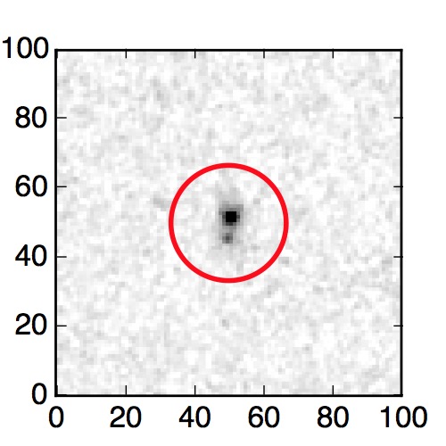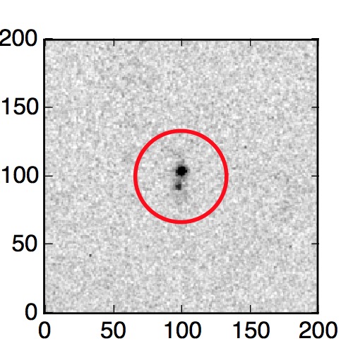 The red circle in the various panels is 1" in radius. The images are 6"x6".