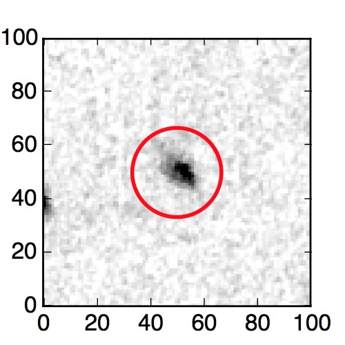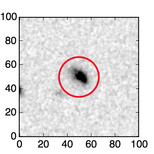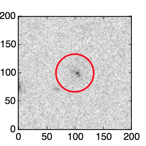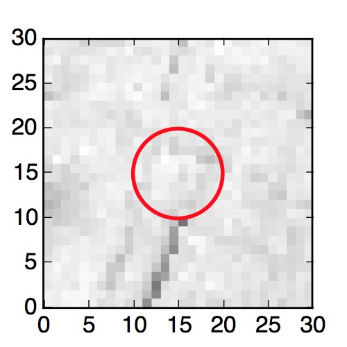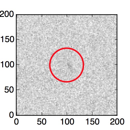 The red circle in the various panels is 1" in radius. The images are 6"x6".
