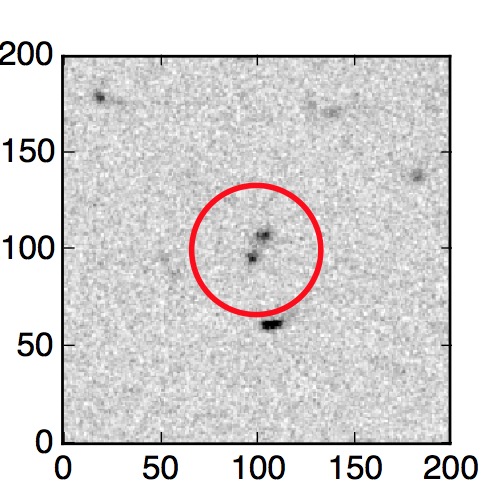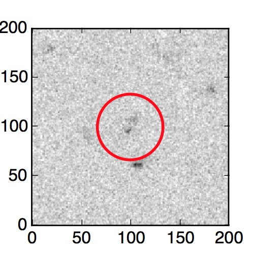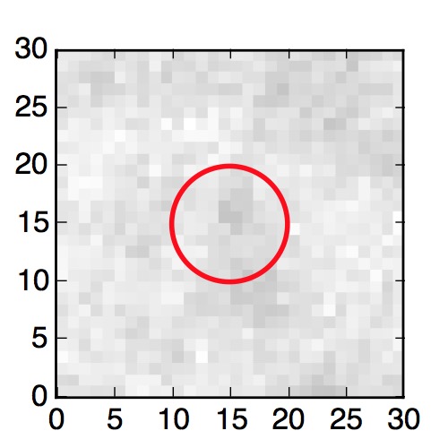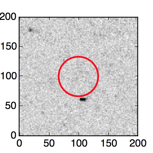 The red circle in the various panels is 1" in radius. The images are 6"x6".