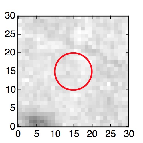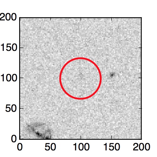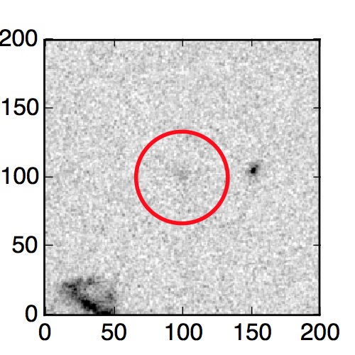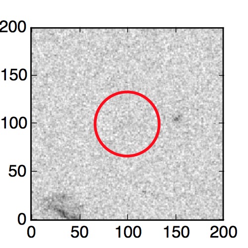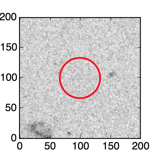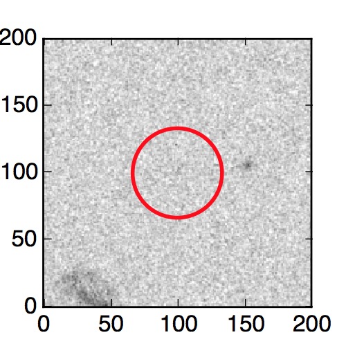The red circle in the various panels is 1" in radius. The images are 6"x6".