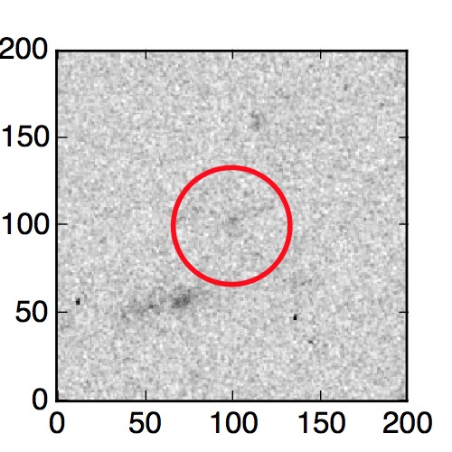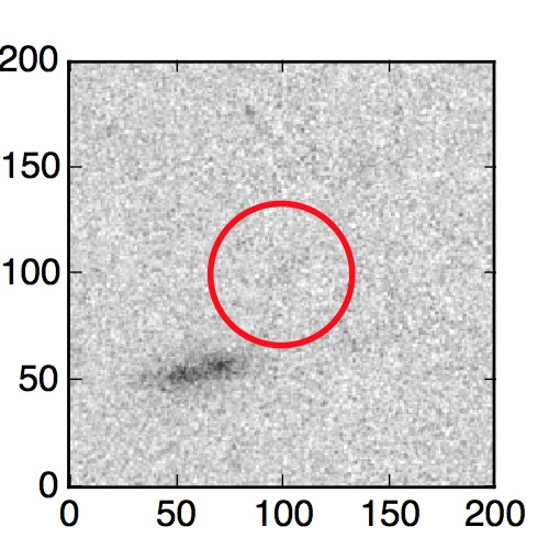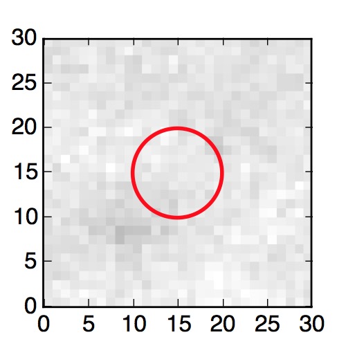 The red circle in the various panels is 1" in radius. The images are 6"x6".