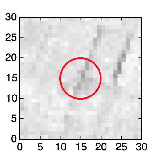 The red circle in the various panels is 1" in radius. The images are 6"x6".