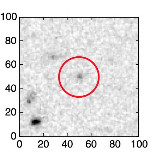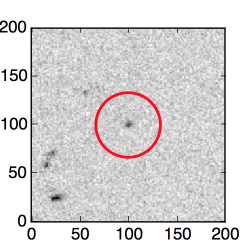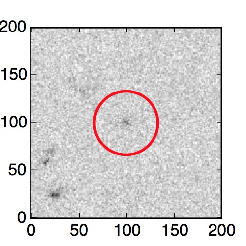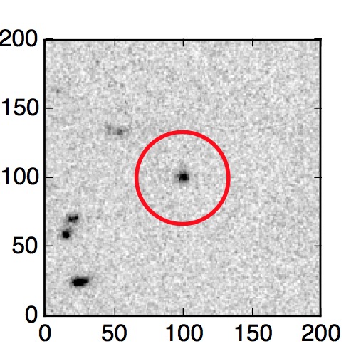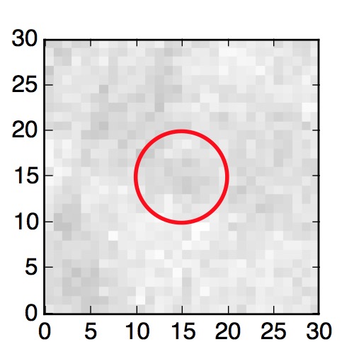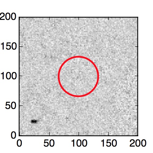 The red circle in the various panels is 1" in radius. The images are 6"x6".