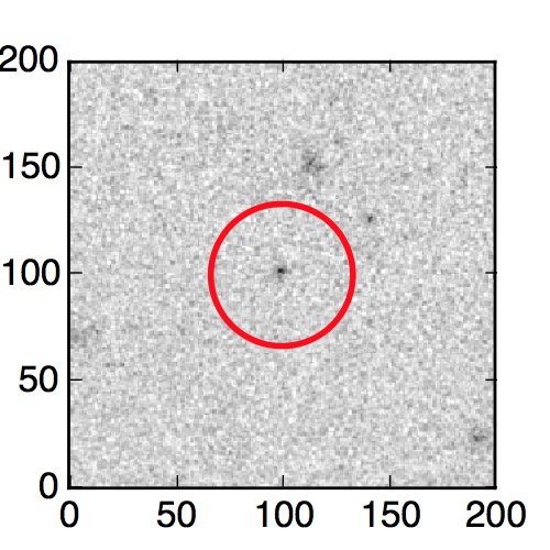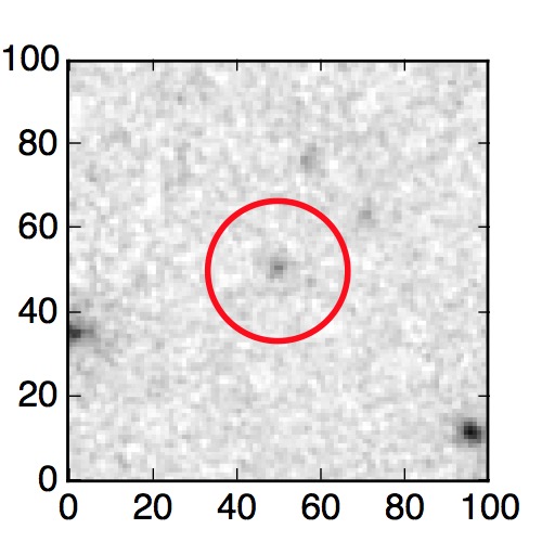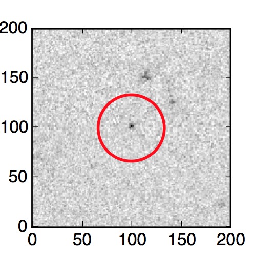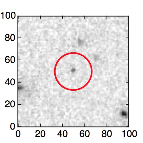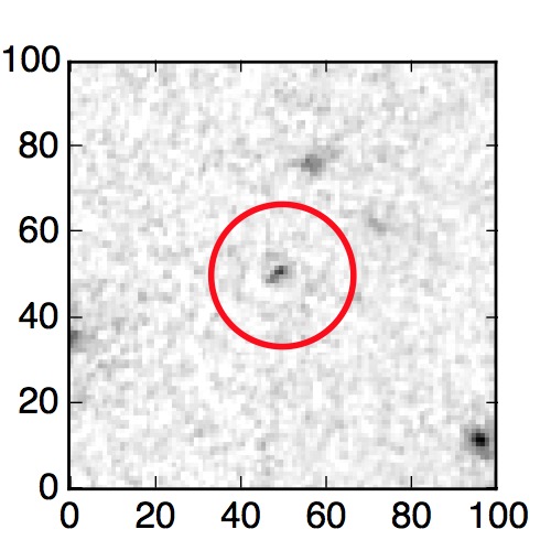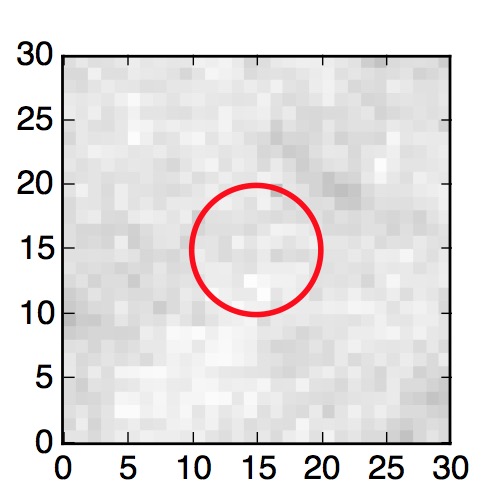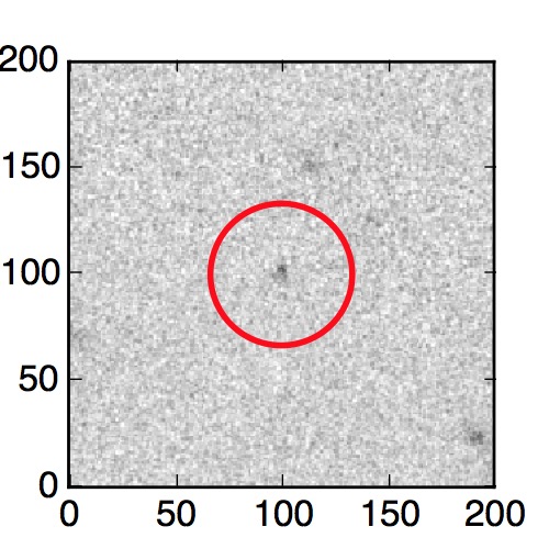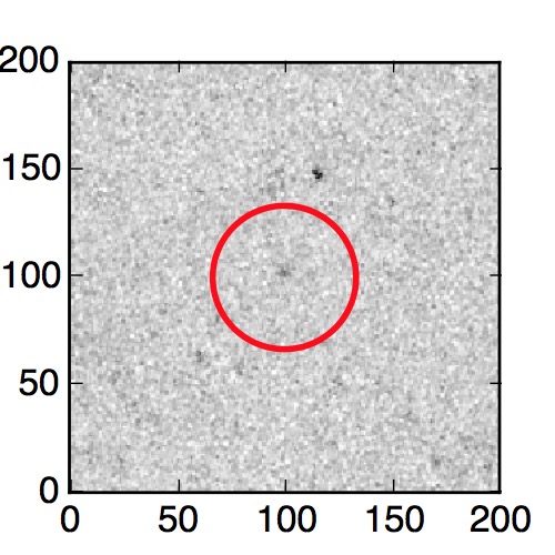 The red circle in the various panels is 1" in radius. The images are 6"x6".
