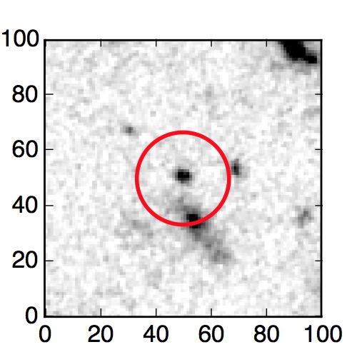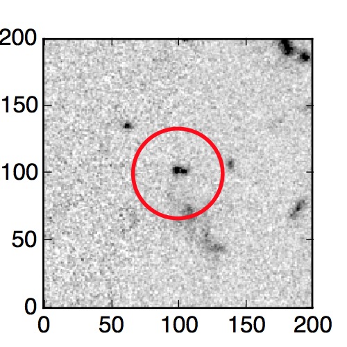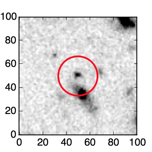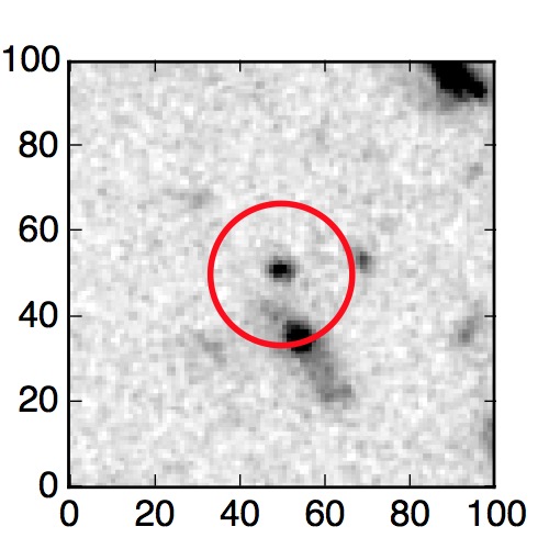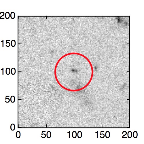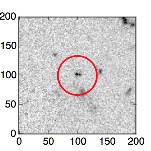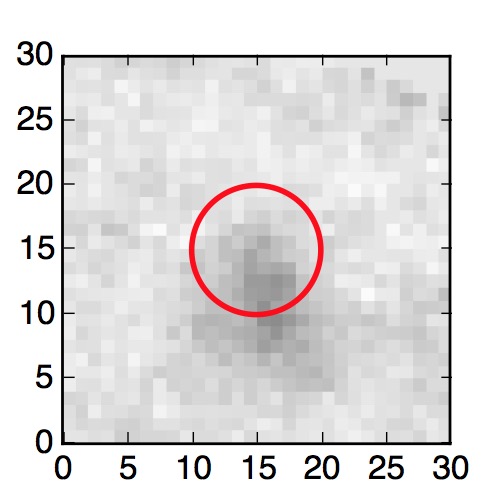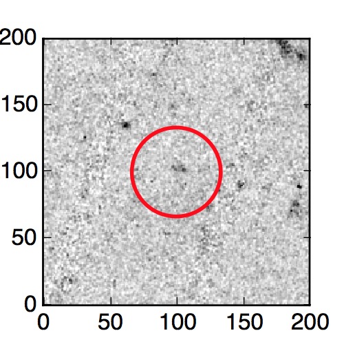 The red circle in the various panels is 1" in radius. The images are 6"x6".