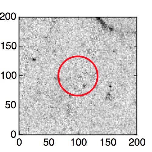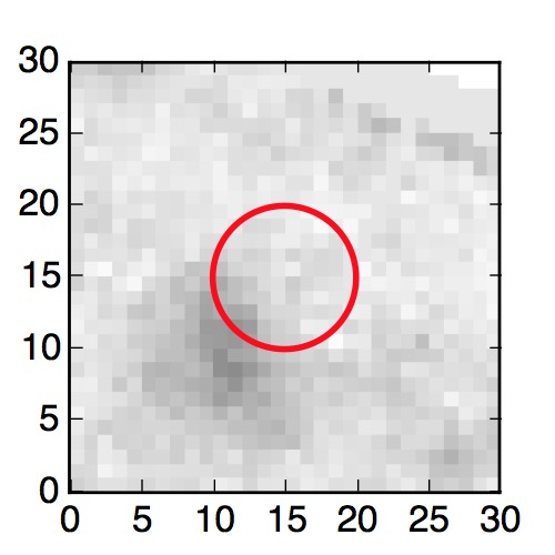 The red circle in the various panels is 1" in radius. The images are 6"x6".
