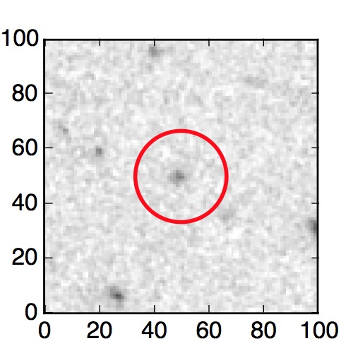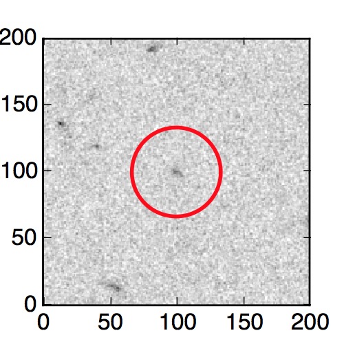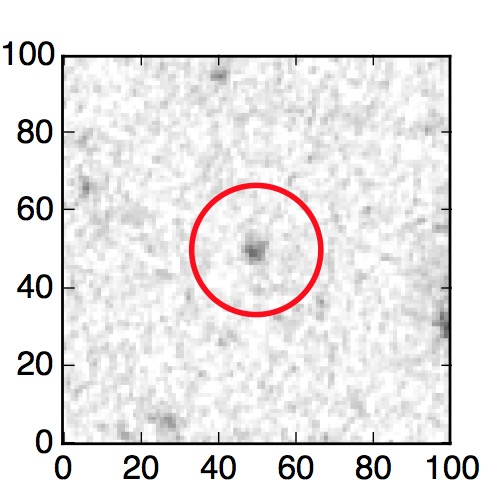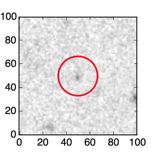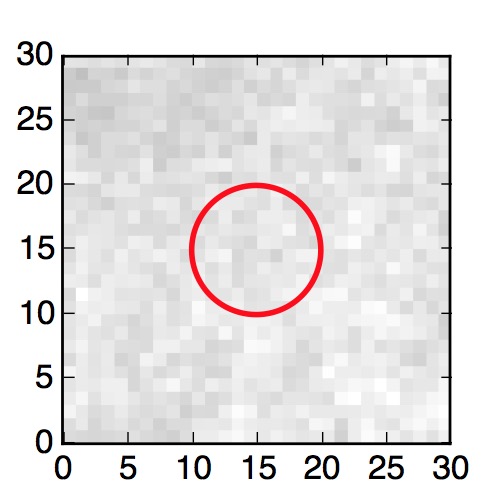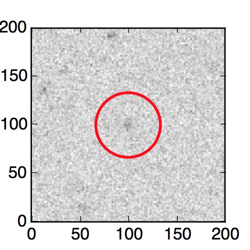The red circle in the various panels is 1" in radius. The images are 6"x6".