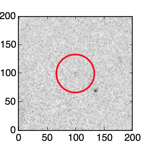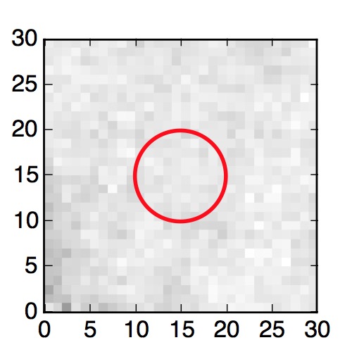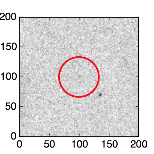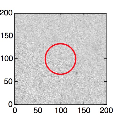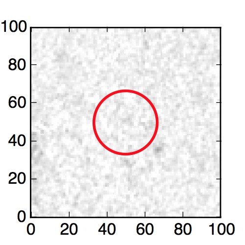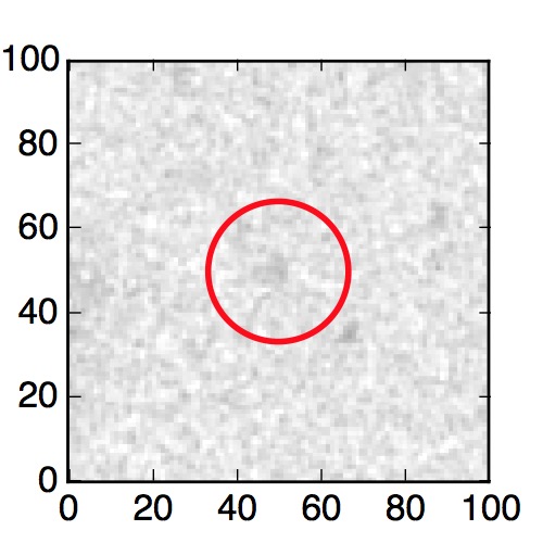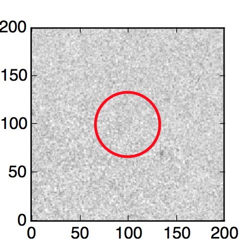 The red circle in the various panels is 1" in radius. The images are 6"x6".