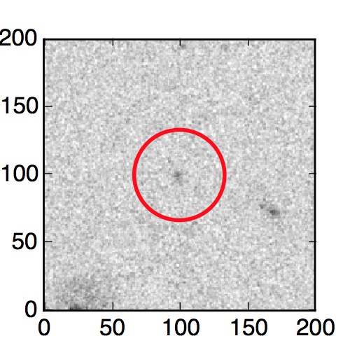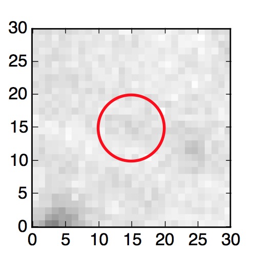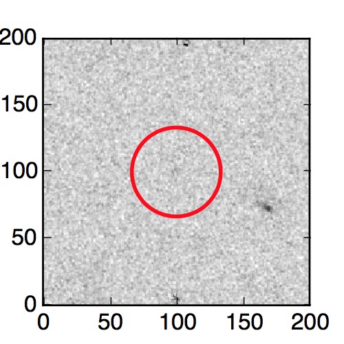 The red circle in the various panels is 1" in radius. The images are 6"x6".