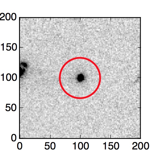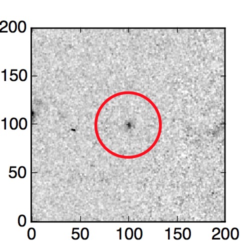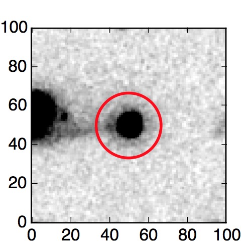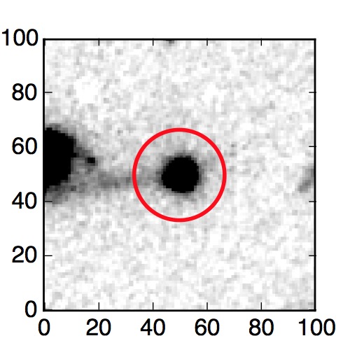 The red circle in the various panels is 1" in radius. The images are 6"x6".