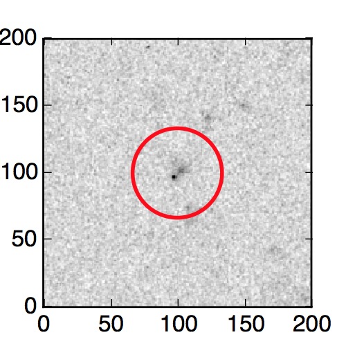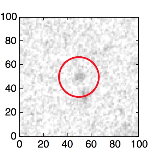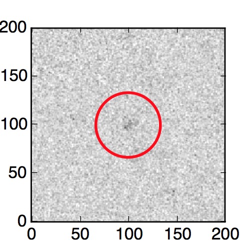The red circle in the various panels is 1" in radius. The images are 6"x6".