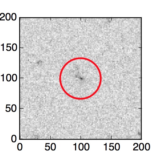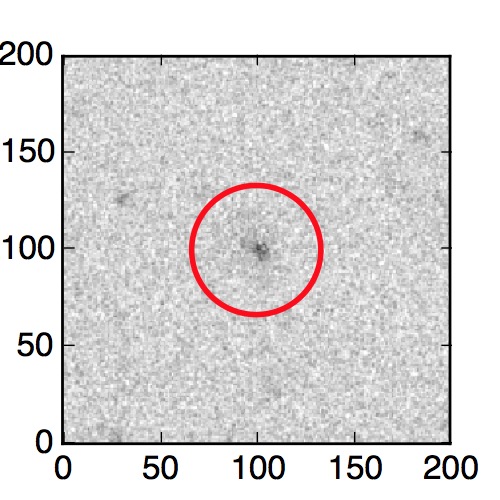 The red circle in the various panels is 1" in radius. The images are 6"x6".