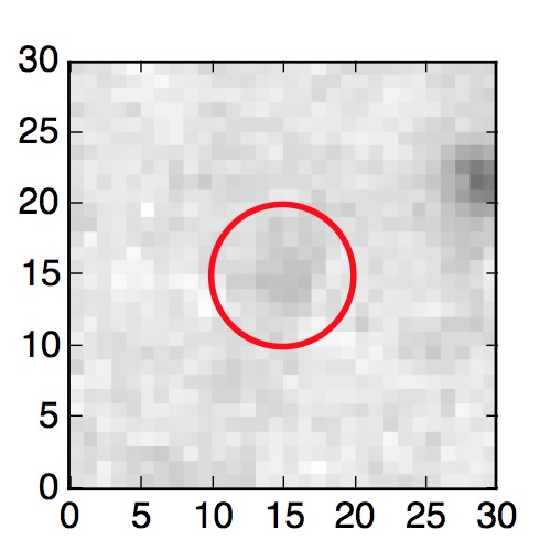 The red circle in the various panels is 1" in radius. The images are 6"x6".