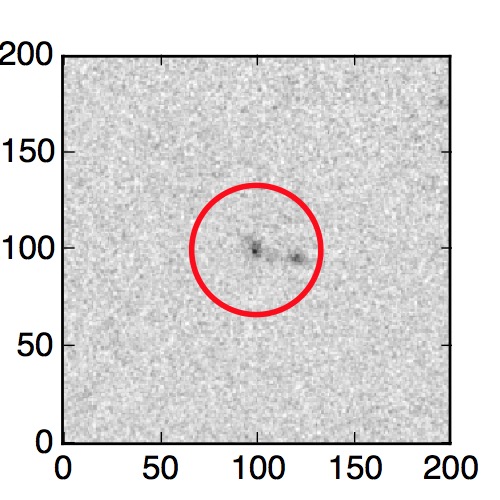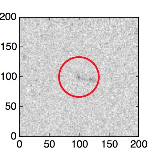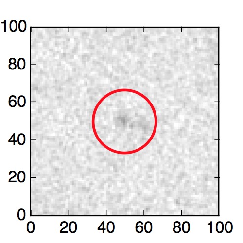 The red circle in the various panels is 1" in radius. The images are 6"x6".