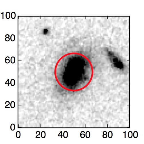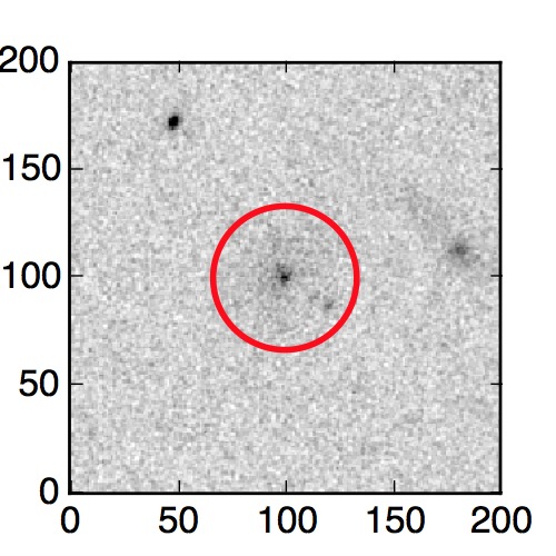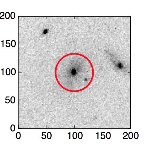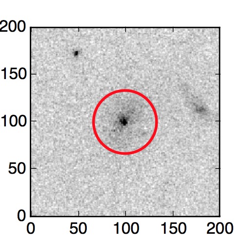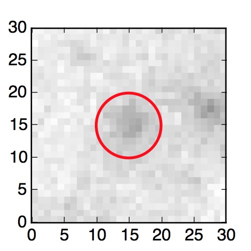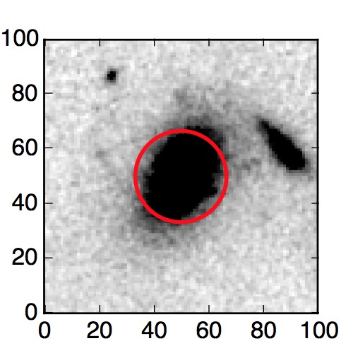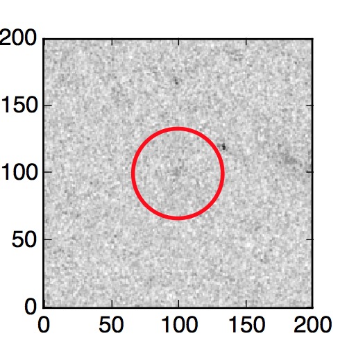 The red circle in the various panels is 1" in radius. The images are 6"x6".