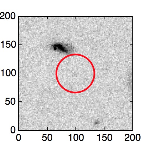 The red circle in the various panels is 1" in radius. The images are 6"x6".
