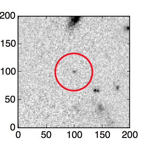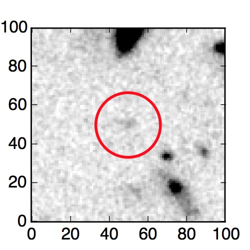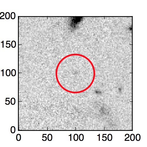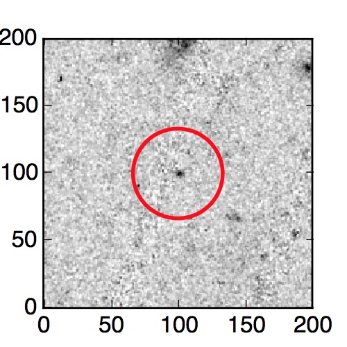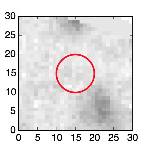 The red circle in the various panels is 1" in radius. The images are 6"x6".