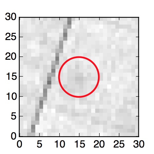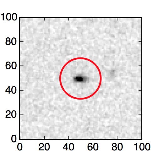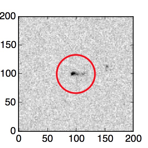 The red circle in the various panels is 1" in radius. The images are 6"x6".