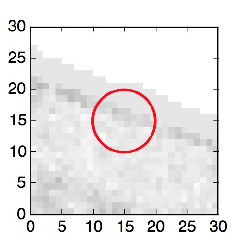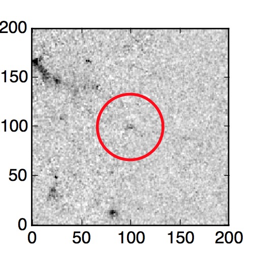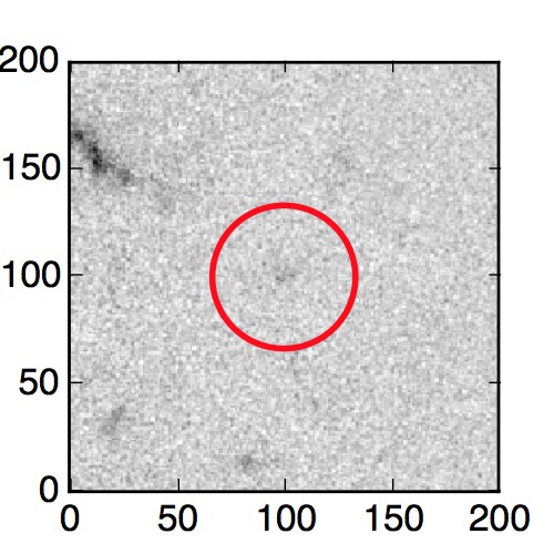 The red circle in the various panels is 1" in radius. The images are 6"x6".