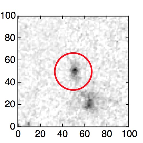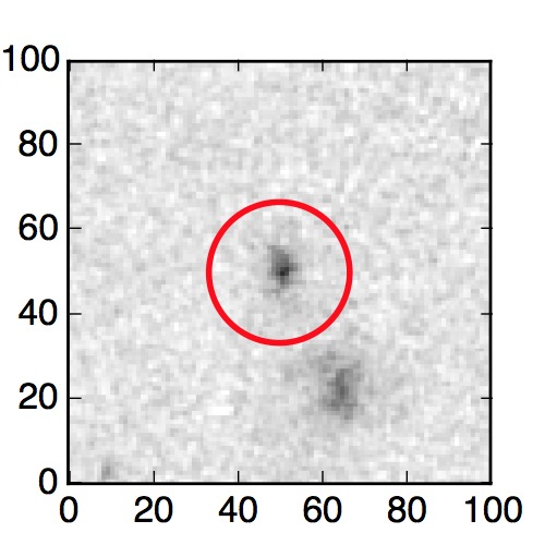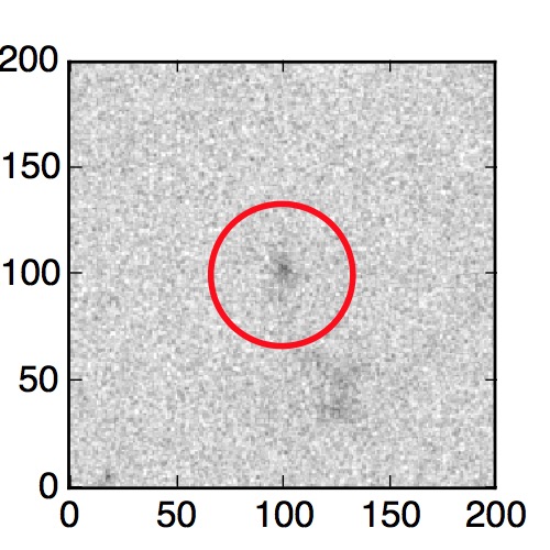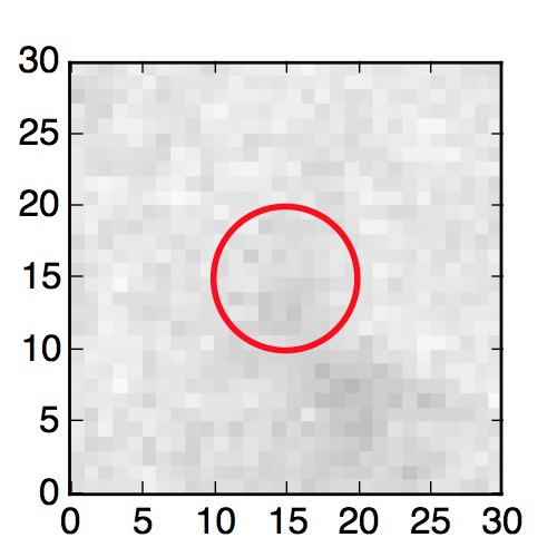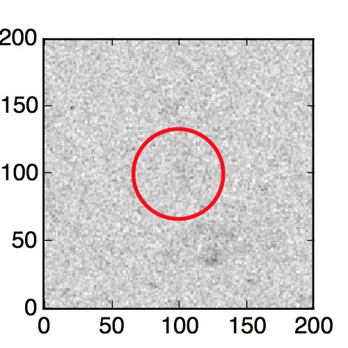 The red circle in the various panels is 1" in radius. The images are 6"x6".