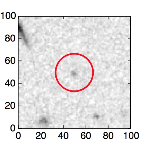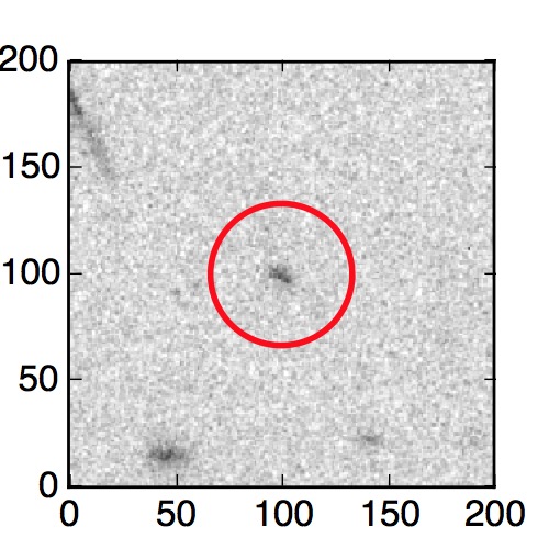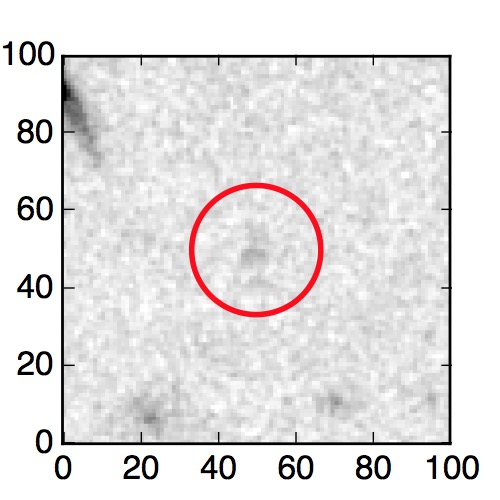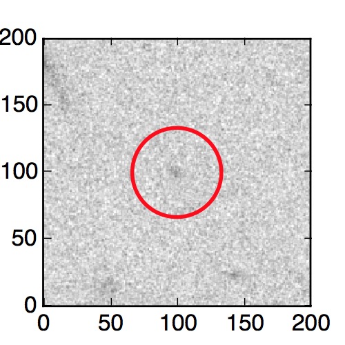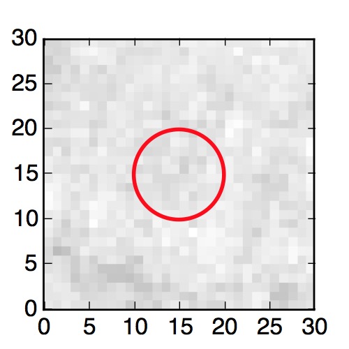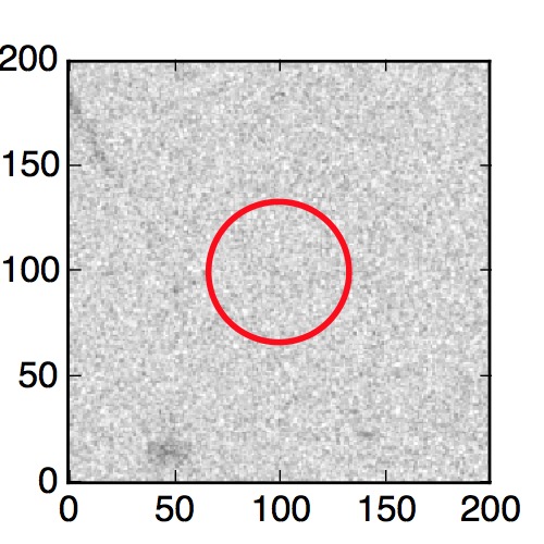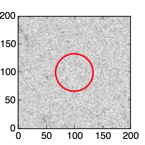 The red circle in the various panels is 1" in radius. The images are 6"x6".