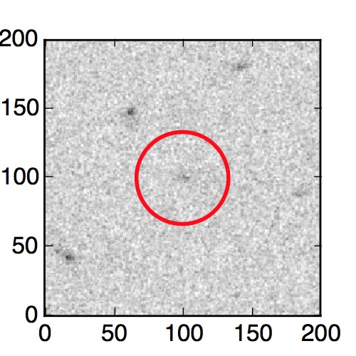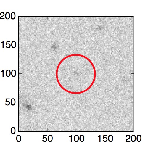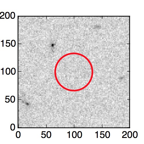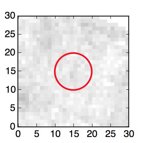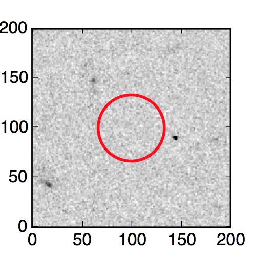 The red circle in the various panels is 1" in radius. The images are 6"x6".