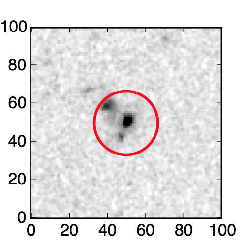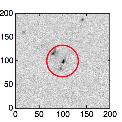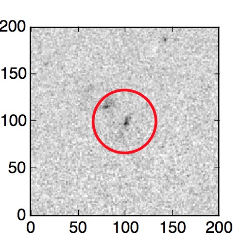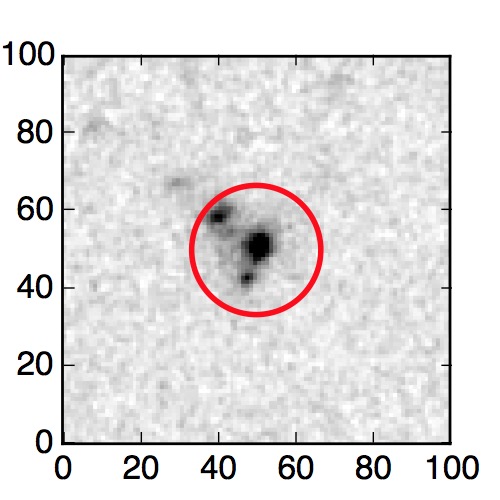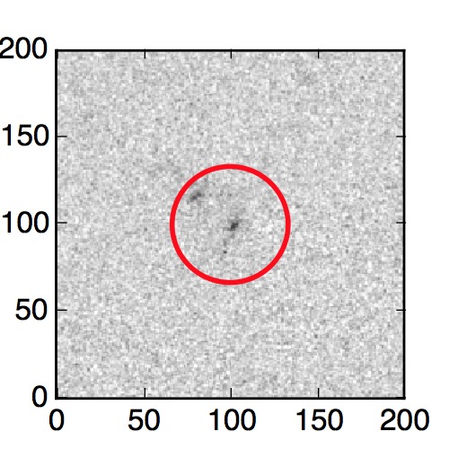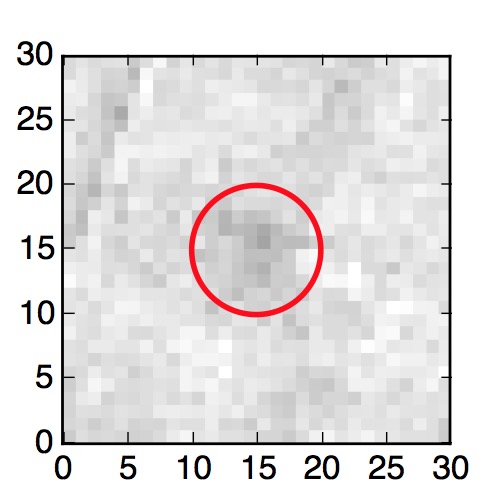 The red circle in the various panels is 1" in radius. The images are 6"x6".