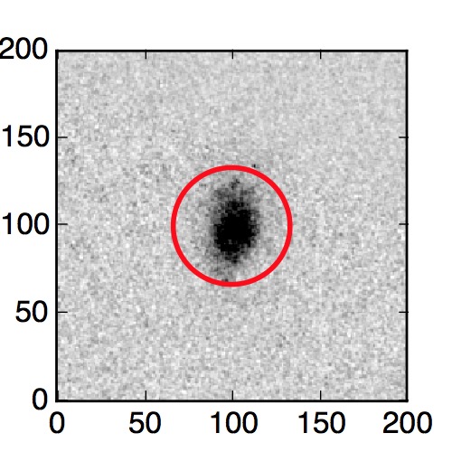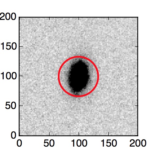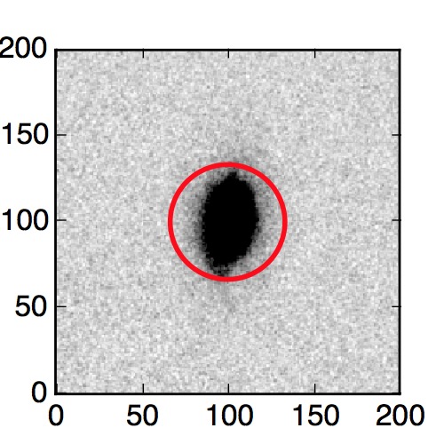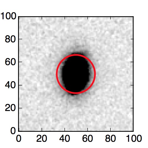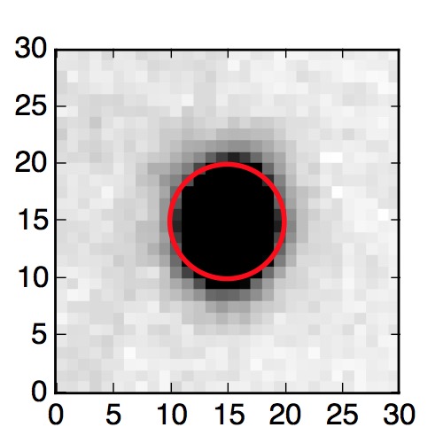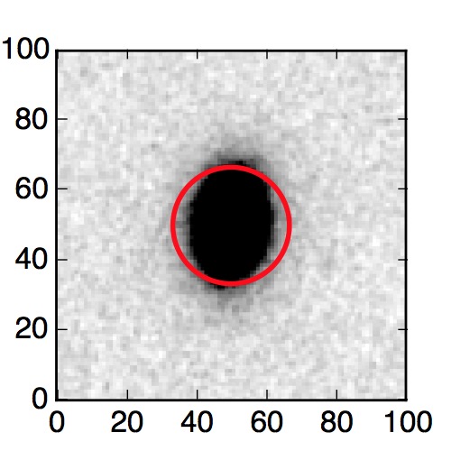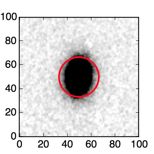 The red circle in the various panels is 1" in radius. The images are 6"x6".