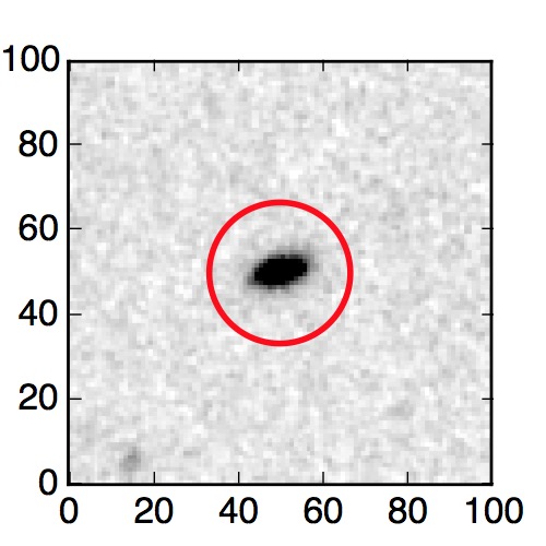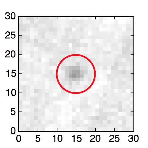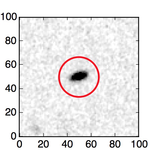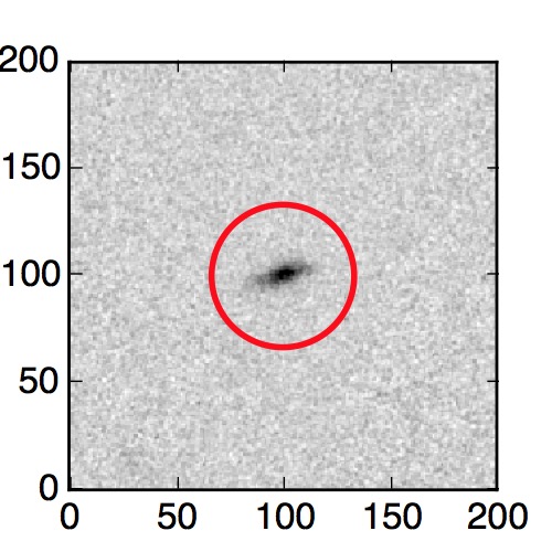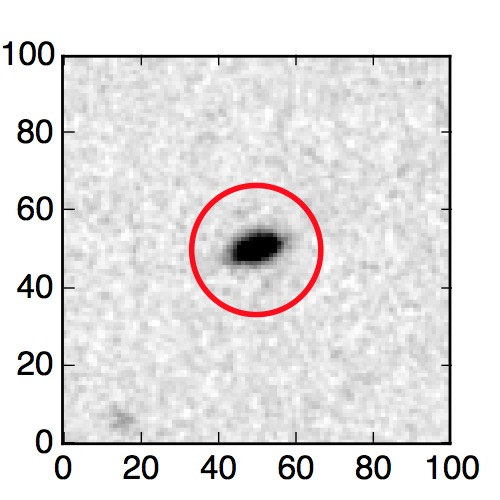 The red circle in the various panels is 1" in radius. The images are 6"x6".