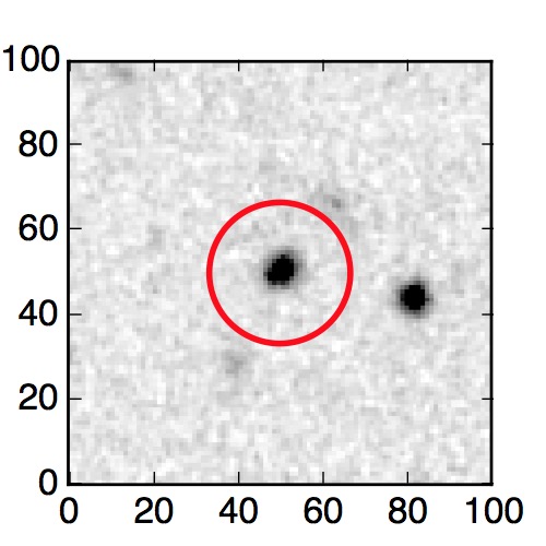 The red circle in the various panels is 1" in radius. The images are 6"x6".