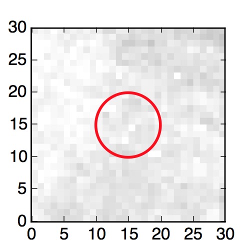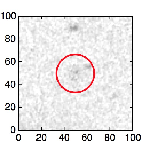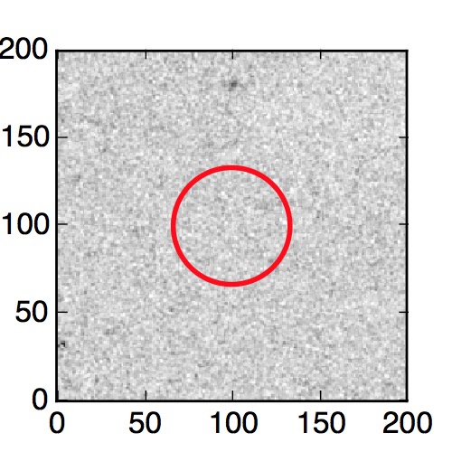The red circle in the various panels is 1" in radius. The images are 6"x6".