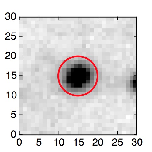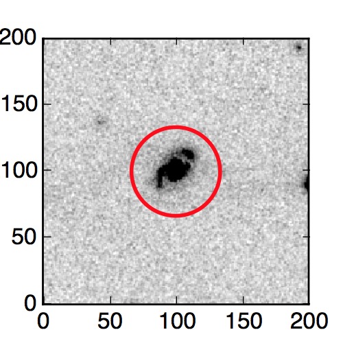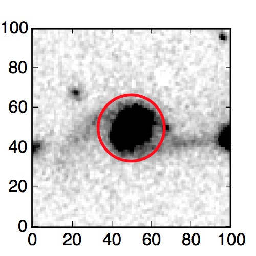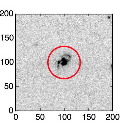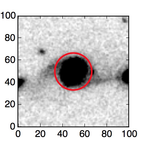 The red circle in the various panels is 1" in radius. The images are 6"x6".