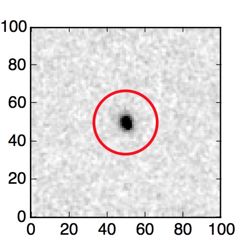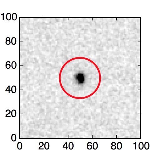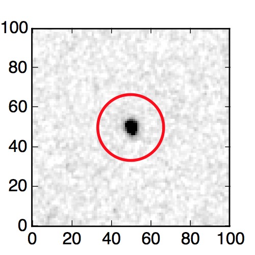 The red circle in the various panels is 1" in radius. The images are 6"x6".