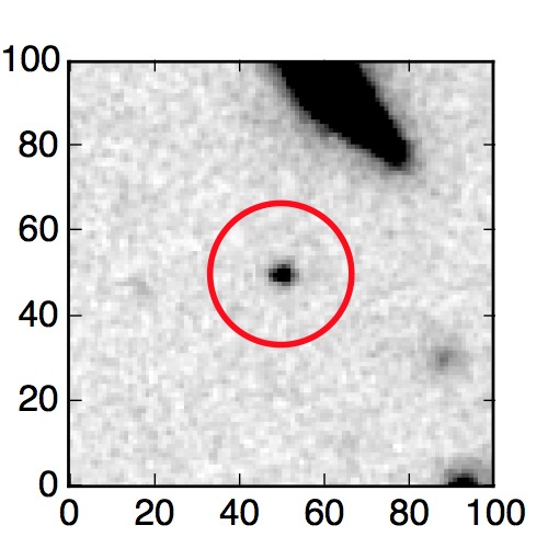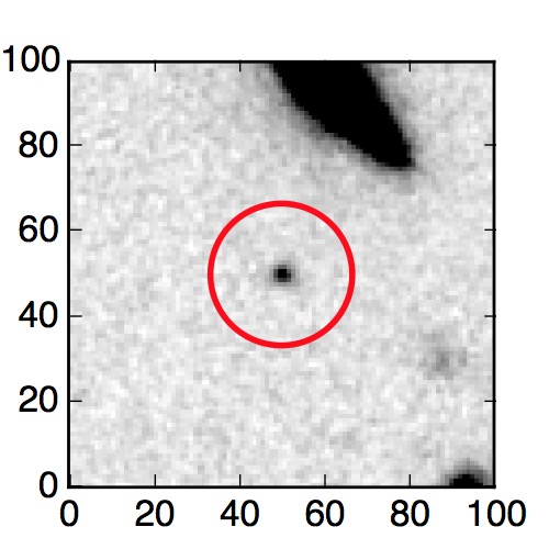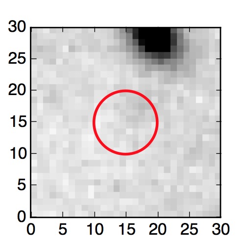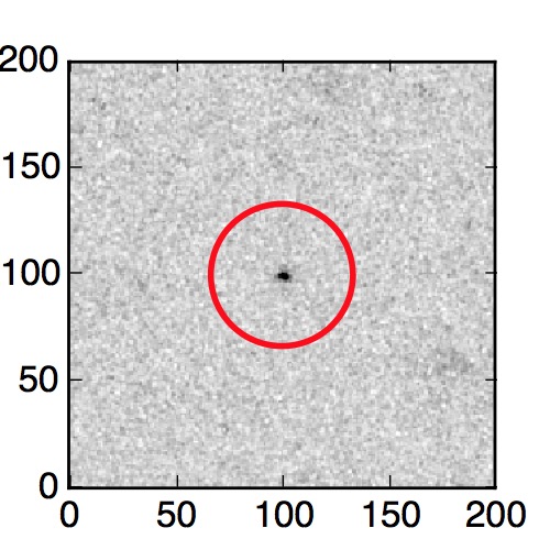 The red circle in the various panels is 1" in radius. The images are 6"x6".