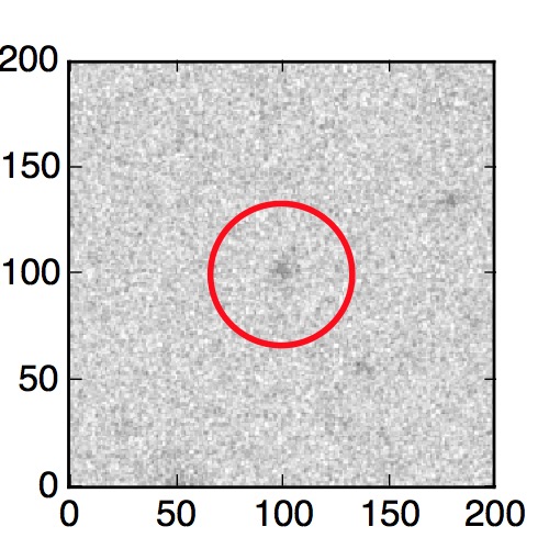 The red circle in the various panels is 1" in radius. The images are 6"x6".