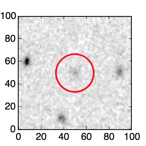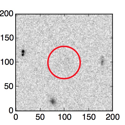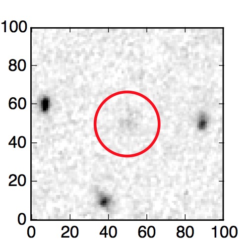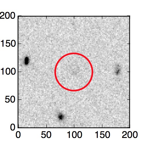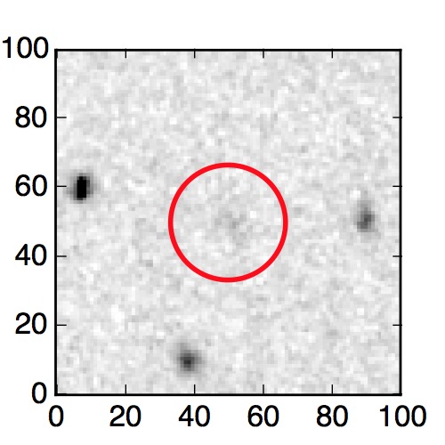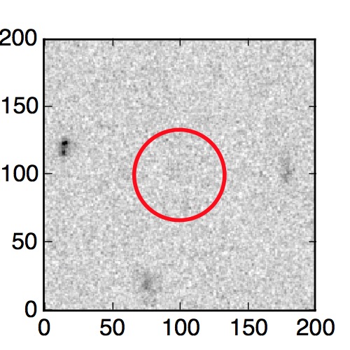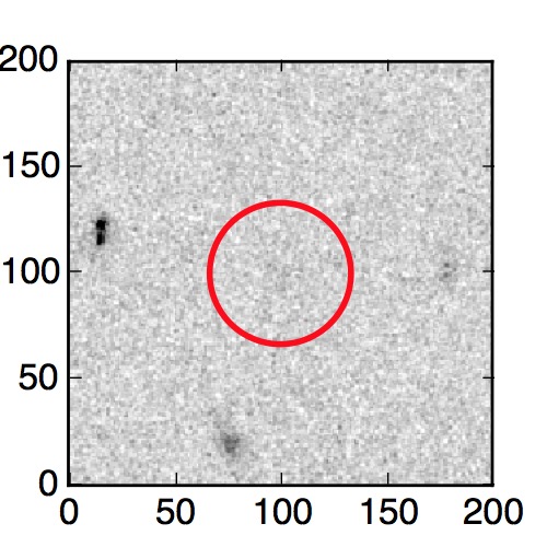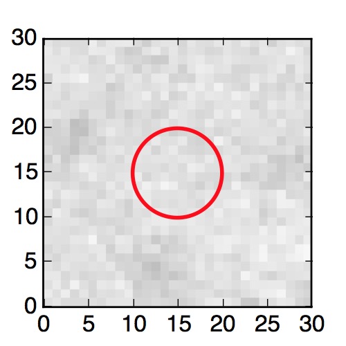 The red circle in the various panels is 1" in radius. The images are 6"x6".