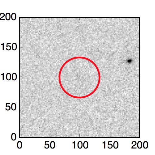 The red circle in the various panels is 1" in radius. The images are 6"x6".